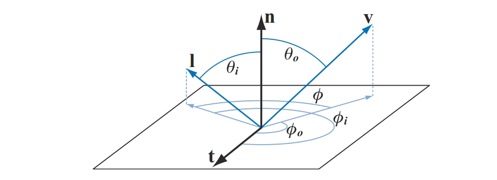 入射方向与出射方向各有两个自由度。一种常用的参数化方式包含了两个角度: