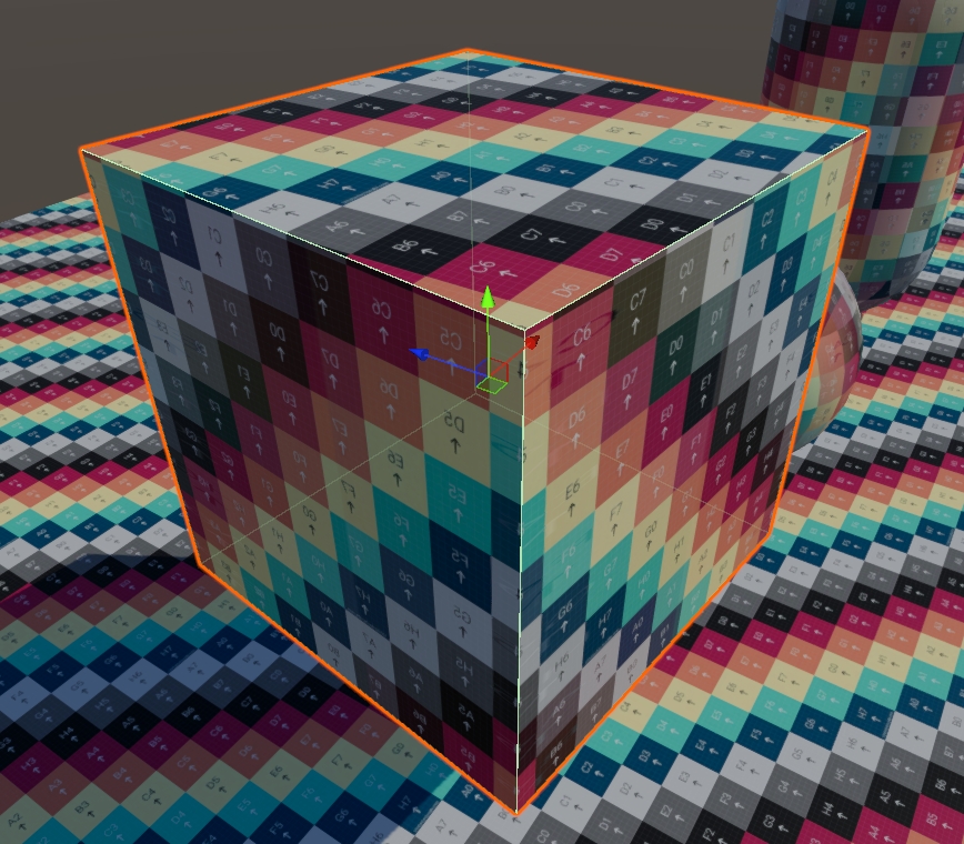 现在,我们观察材质外观,会发现因投影方向不同导致的镜像问题: