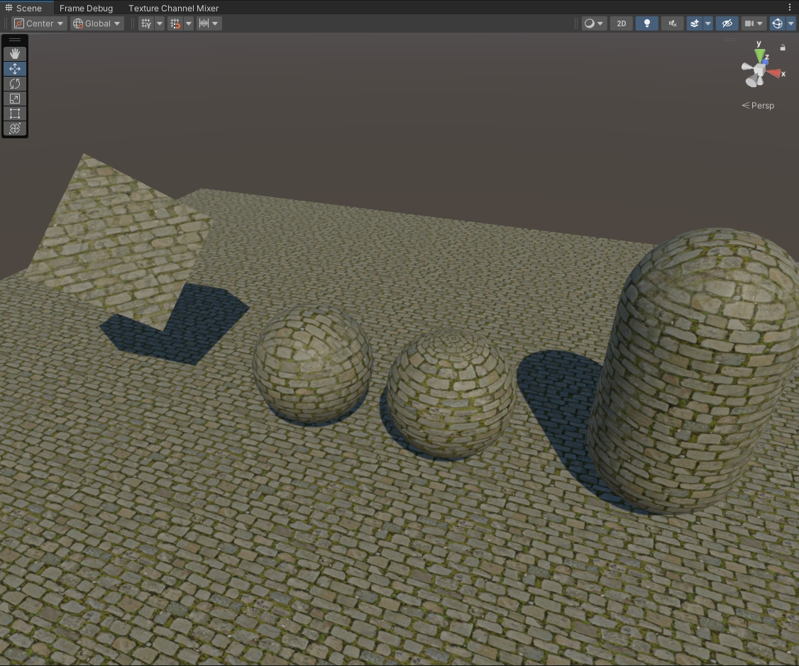 由于我们是将一个相同的纹理进行了三次映射,有可能我们在场景中能看到较为明显的重复,我们可以选择对映射进行一定程度的偏移,减弱映射效果。